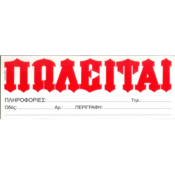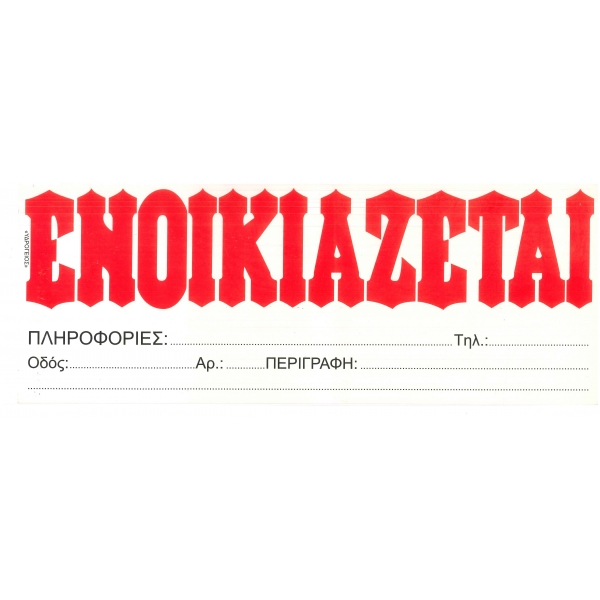 Αυτοκόλλητο ΕΝΟΙΚΙΑΖΕΤΑΙ 10χ35