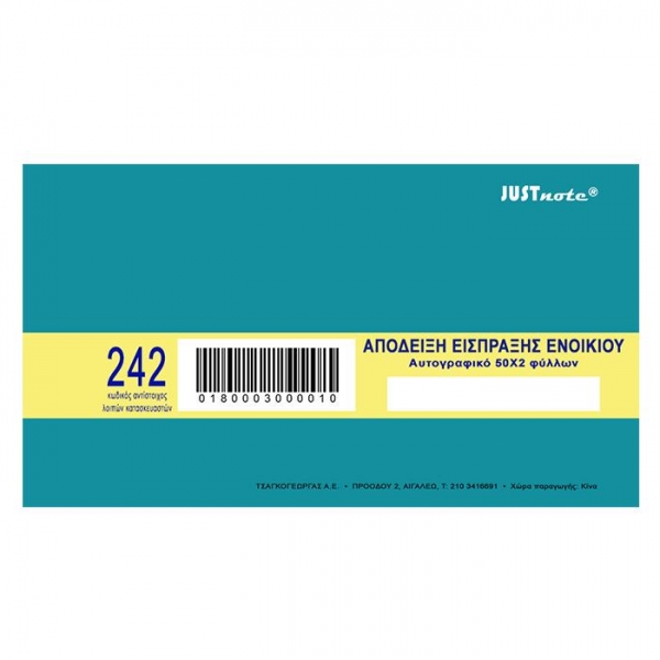 ΕΝΤΥΠΟ ΕΙΣΠΡΑΞΗΣ ΕΝΟΙΚΙΟΥ ΤΥΠΟΤΡΑΣΤ 10Χ19 50 Χ2 242