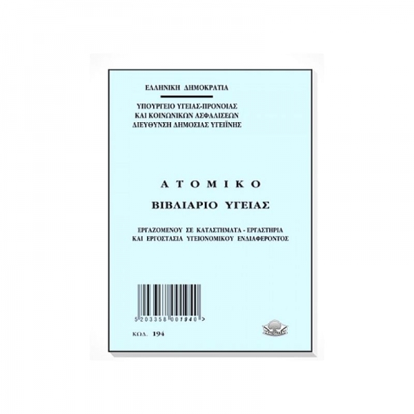 ΑΤΟΜΙΚΟ ΒΙΒΛΙΑΡΙΟ ΥΓΕΙΑΣ ΕΡΓΑΖΟΜΕΝΟΥ ΥΓΕΙΟΝΟΜΙΚΟΥ ΕΝΔΙΑΦΕΡΟΝΤΟΣ Νο 194 10Χ14