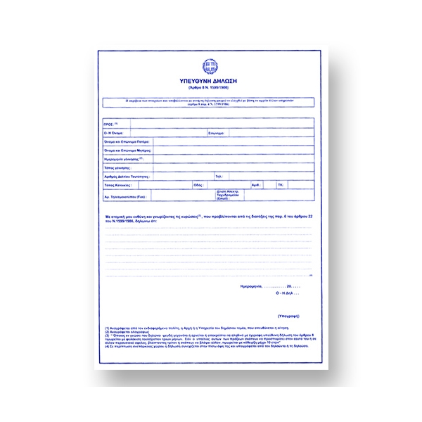 ΥΠΕΥΘΥΝΗ ΔΗΛΩΣΗ Ν1599