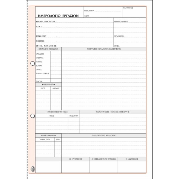 ΕΝΤΥΠΟ ΗΜΕΡΟΛΟΓΙΟ ΕΡΓΑΣΙΩΝ 50Χ2 Α4