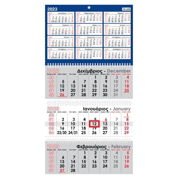 Next ημερολόγιο τοίχου τριμηνιαίο με 3 σπιράλ επί 12φ. 31x59εκ.